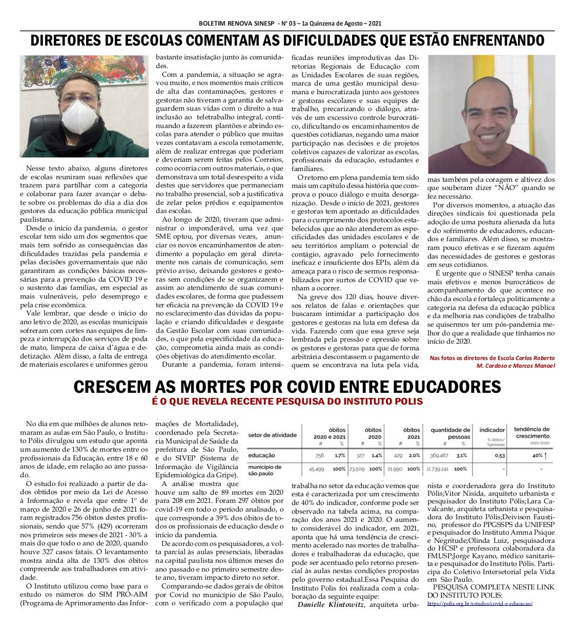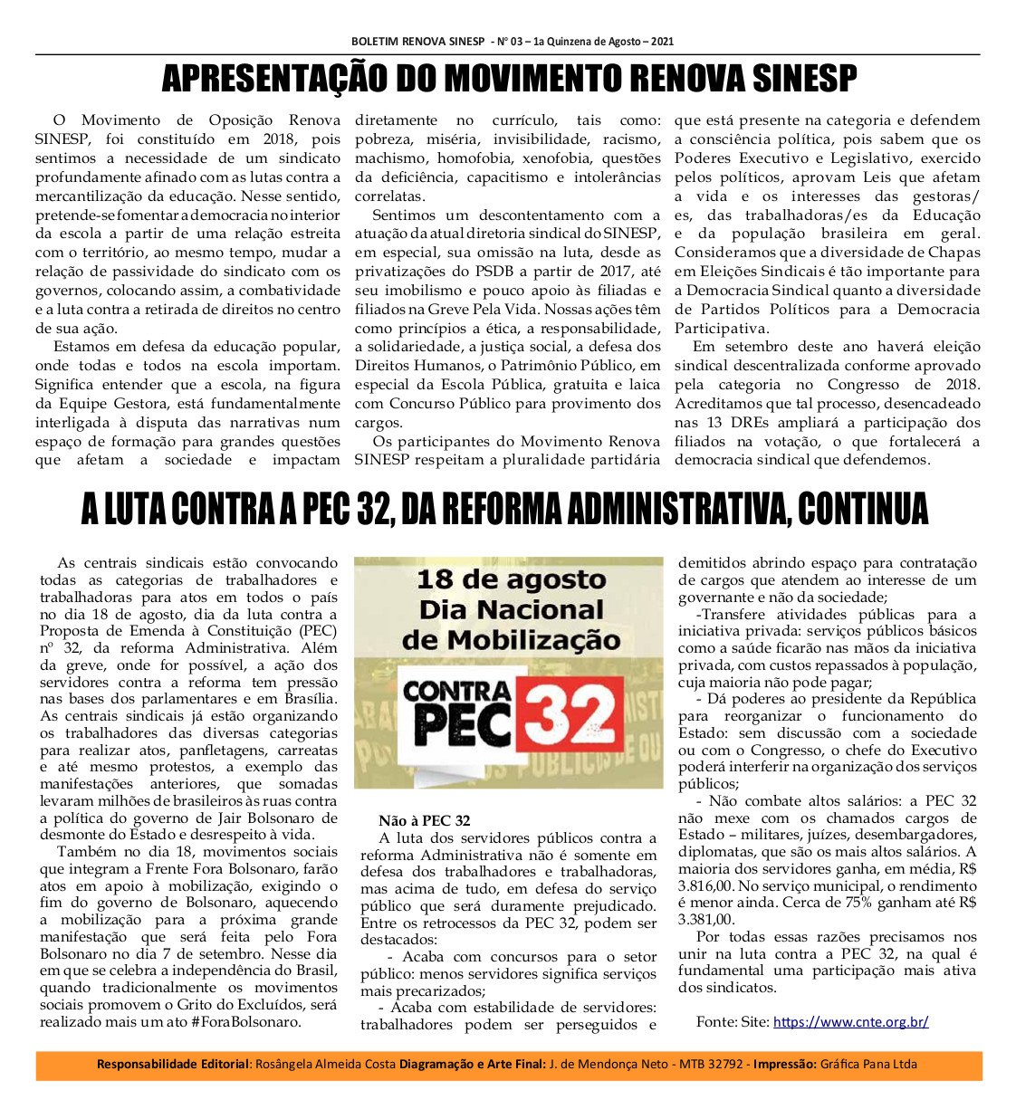 Boletim Renova Sinesp, edição 03, Agosto de 2021